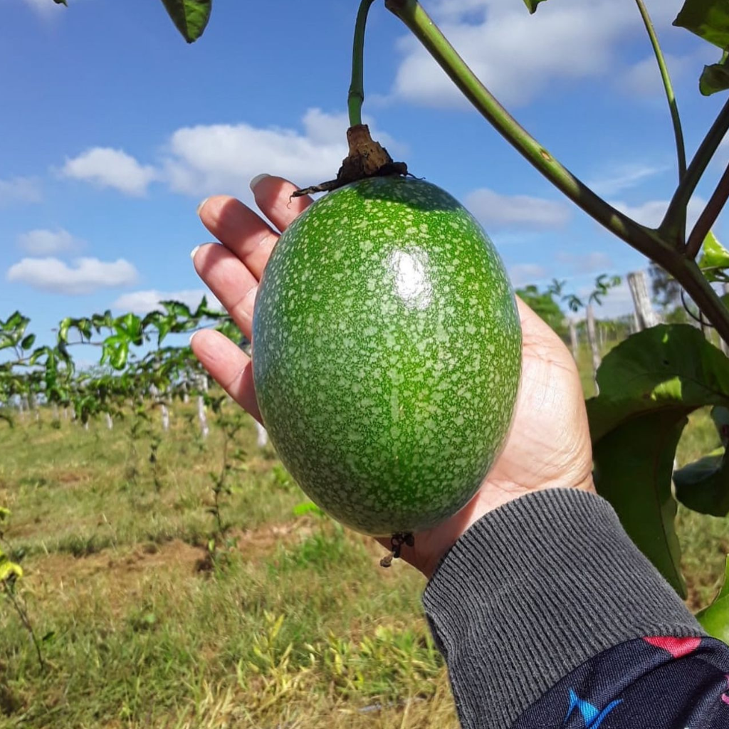 Frutos dourados: Os maracujás dessa variedade possuem uma casca amarelo-ouro vibrante, com polpa suculenta e sabor adocicado, perfeitos para sucos, sobremesas ou consumo in natura.